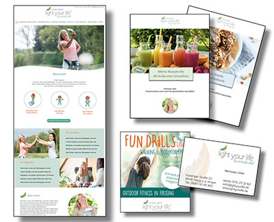 Als das Ergebnis vorlag, konnten wir starten – nicht mit einem neuen Flyer, sondern einem ganz neuen Erscheinungsbild der Firma, einschließlich dem neuen Firmennamen „Light your life“. Jetzt hatte alles Hand und Fuß, sprich es gab eine einheitliche Linie.